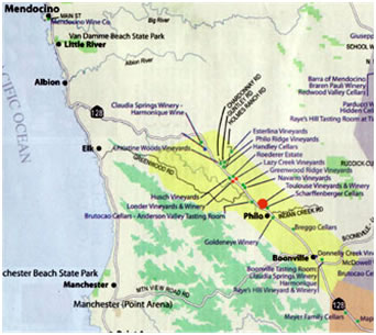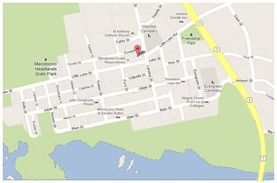 Mendocino, quốc lộ ven biển số 1 tiếp nối với con đường 128, anh chạy thêm hơn 10 miles nữa mà vẫn không thấy bảng chỉ đường báo hiệu tới thị trấn Mendocino. Anh đang sốt ruột thì tới một ngã tư đèn xanh đèn đỏ, chiếc GPS báo hiệu cho anh quẹo trái vào con đường Little Lake Road. Anh chạy chừng ba bốn blocks thì GPS lại bảo anh quẹo trái. Anh lái chừng vài phút thì quả nhiên tới nơi. |