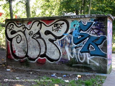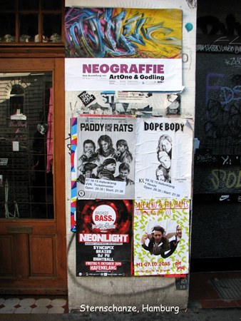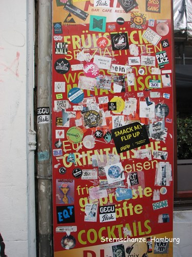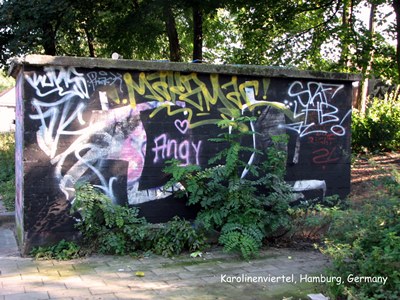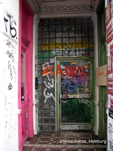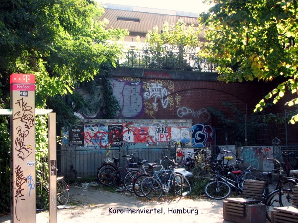 Trên đường trở về khách sạn tôi đi lang thang sang khu phố bên cạnh có tên là Karolinenviertel chụp được mấy tấm hình graffiti ngay gần trạm xe hầm Feldstraße mà các bạn thấy trên đây. Schanzenviertel ngay gần khu "đèn đỏ" mà tôi không hay nên đã không tới, thật là đáng tiếc.