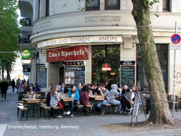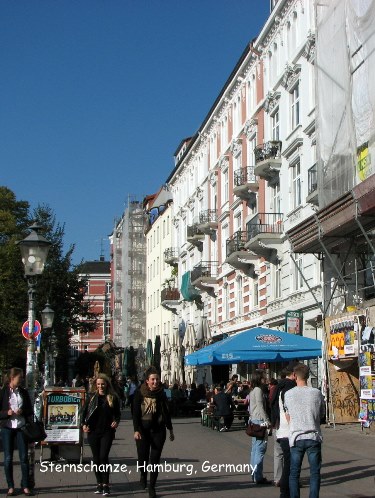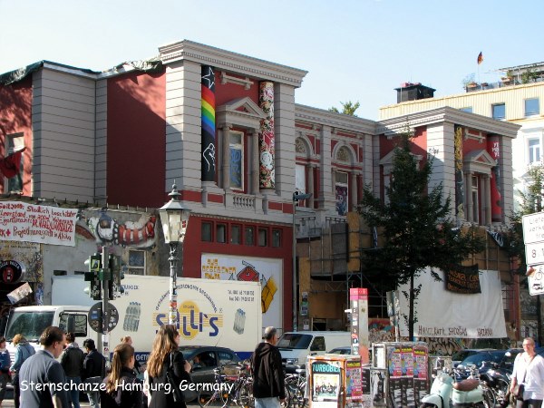 Khu vực mang tên Schanzenviertel là cái nôi của lối văn hóa khác của Hamburg. Ngày xưa nơi đây là nơi sinh sống của giai cấp công nhân nhưng sau này nó là nơi tụ tập của những nghệ sĩ, nhạc sĩ, những thanh niên thích đi bàn trượt có bánh xe (skates) và nhiều người có tài vặt khác. Bạn ra khỏi trạm xe hầm Sternschanze, đi dọc Schanzenstraße hướng Nam là tới nơi tụ tập của những sinh viên đến từ khắp nơi trên thế giới. Bạn gắng đến căn nhà mang tên Rote Flora (góc Schulterßlatt và Susannenstraße) là nơi bỏ hoang bị thanh niên bụi đời chiếm để ở và biến nó thành một quán café suốt ngày có nhạc sống, đôi ba khi có bán cơm chay rẻ tiền, cứ đến thứ Sáu và thứ Bẩy là có đông người tới hội hè nhẩy múa vui chơi.