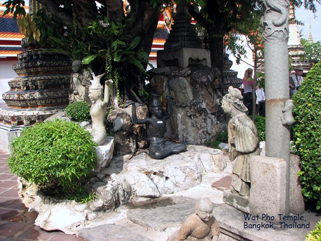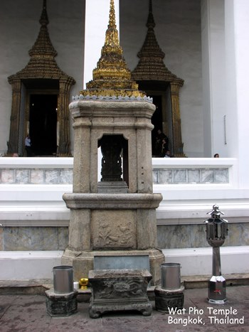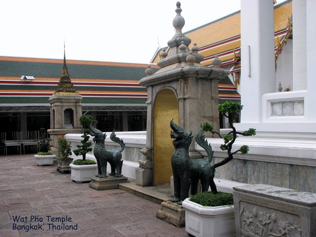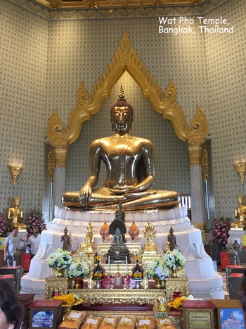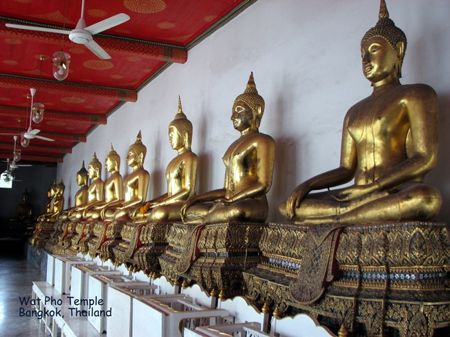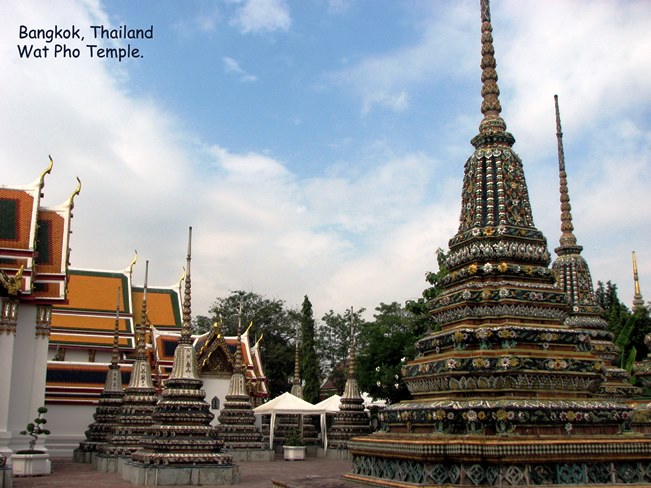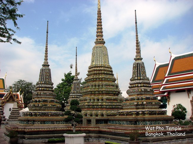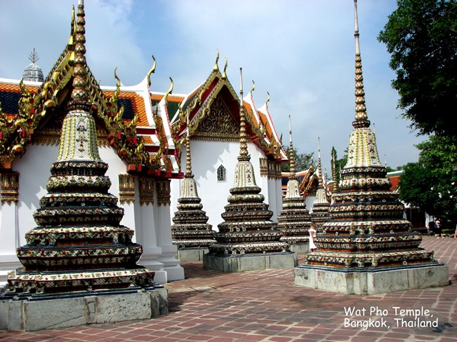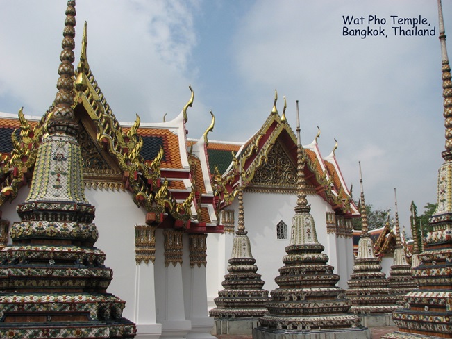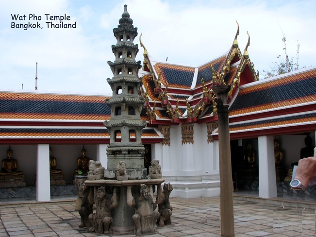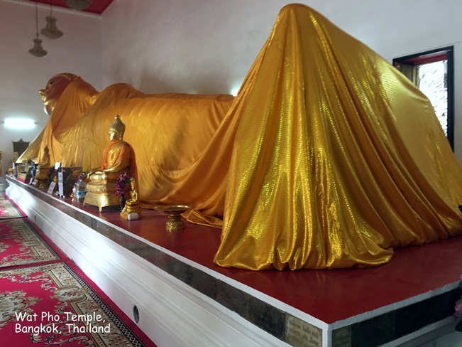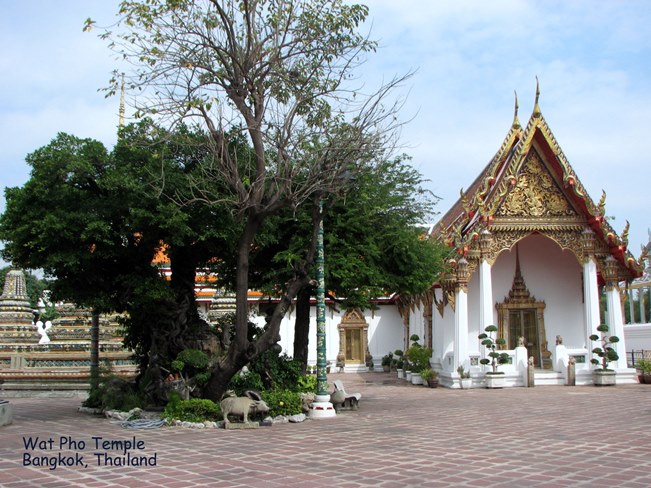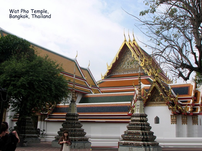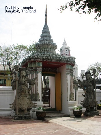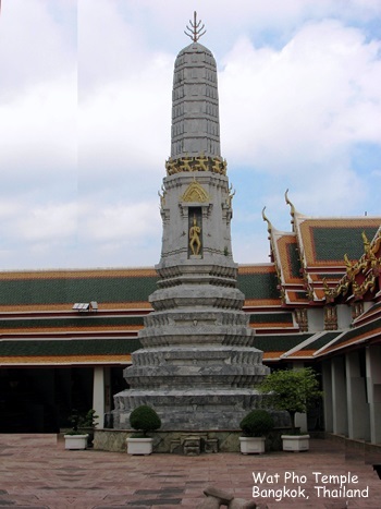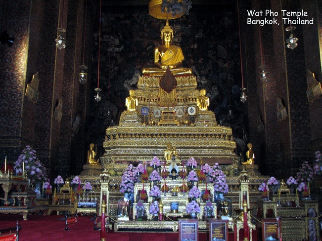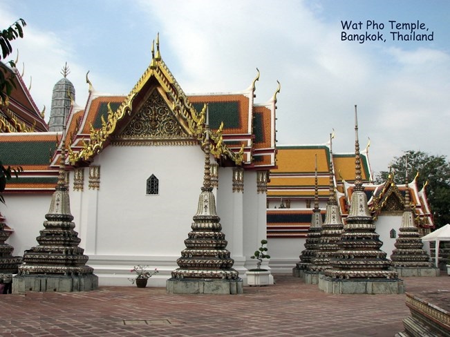 Wat Pho (ngôi đền có bức tượng Phật nằm - Temple of the Reclining Buddha), là ngôi đền lớn và xưa nhất Bangkok. Wat Pho là chữ tắt của Wat Phodharam – tên một ngôi đền nhà quê thời xưa, sau này được các vua Thái cho xây cất lại và mở rộng lớn, nổi tiếng nhờ có bức tượng phật nằm, dài 150 ft cao 40 ft dát vàng lá toàn thân. Tên chính thức của ngôi đền này là Wat Phra Chetuphon Vimolmangklararm, nó được coi là ngôi đền của nhà vua có từ thời vua Phra Petracha trị vì vào những năm 1688-1703.