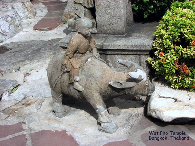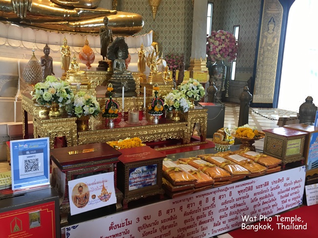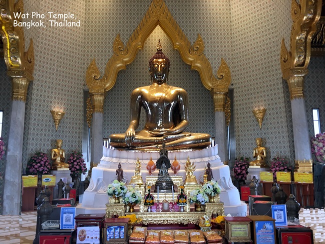 Đền Wat Pho chứa bộ tượng phật lớn nhất ở Thái Lan kể cả bức tượng Phật năm nói trên đây. Wat Pho còn được coi là một trung tâm giáo dục ở Thái Lan và những hình trạm trổ trên đá hoa cũng như những câu viết trên đá nhằn mục đích giáo dục công chúng đã được UNESCO công nhận trong chương trình Ghi Nhớ (Memory Programme) của tổ chức này. Wat Pho là nơi có trường Y khoa dân tộc Thái, một nơi phát sinh ra khoa đấm bóp Thái, ngày nay vẫn còn được dậy và thực tập tại nơi đây. Tại Wat Pho bạn có thể tham dự một màn đấm bóp Thái thứ thiệt.